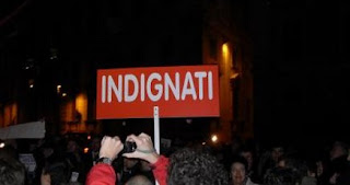 Sapendo già in anticipo (la Capitale affronta l'incubo guerriglia con il centro blindato nda) che gli indignati di casa nostra non capiscono bene il confine tra libertà e reato, visto che nelle terre di nessuno che sono le nostre città si indignano sfondando vetrine e verniciando pietre antiche, è comico notare un aspetto paradossale della vicenda ad una attenta analisi degli slogan pret à porter.